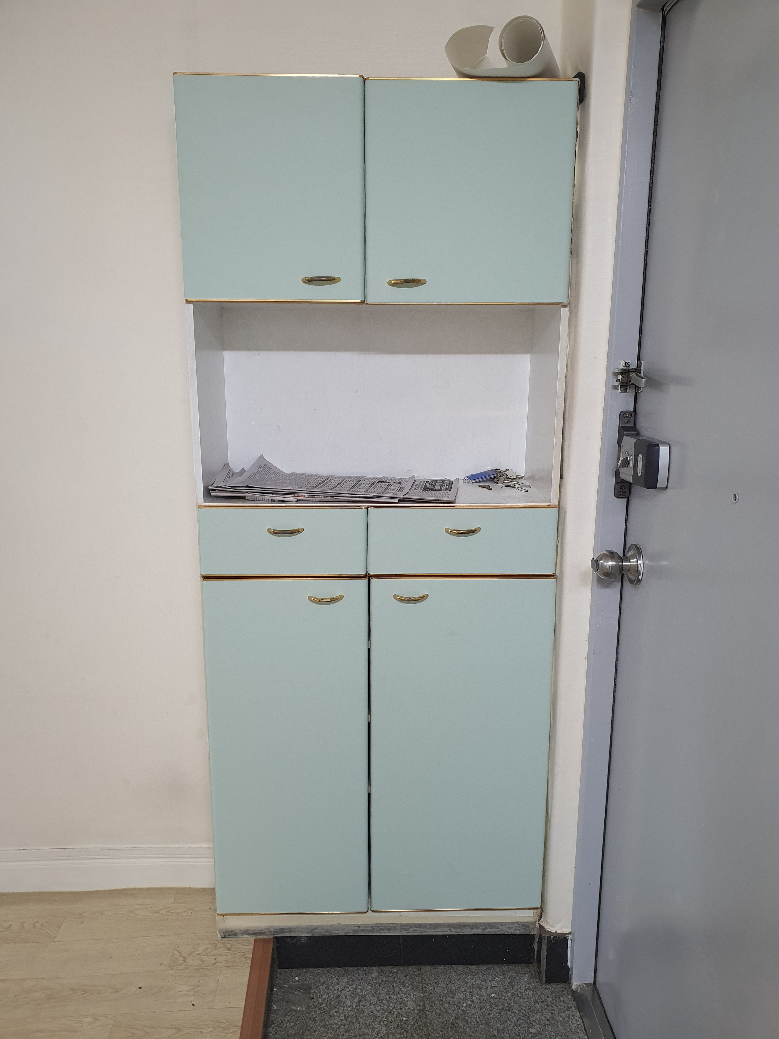 복도쪽에 열려있던 수납장을 철거하고 신발장을 연장하고 기존 신발장은 문을 교체했고 기존 신발장과 팬트리는 마감몰딩 서라운드 없이 문을 천장까지 긴 형태로 교체했습니다. 기존 사진과 비교하면 신발장과 팬트리가 각각 심플한 사각형으로 라인을 잡아 전체가 간결해진 느낌을 줍니다